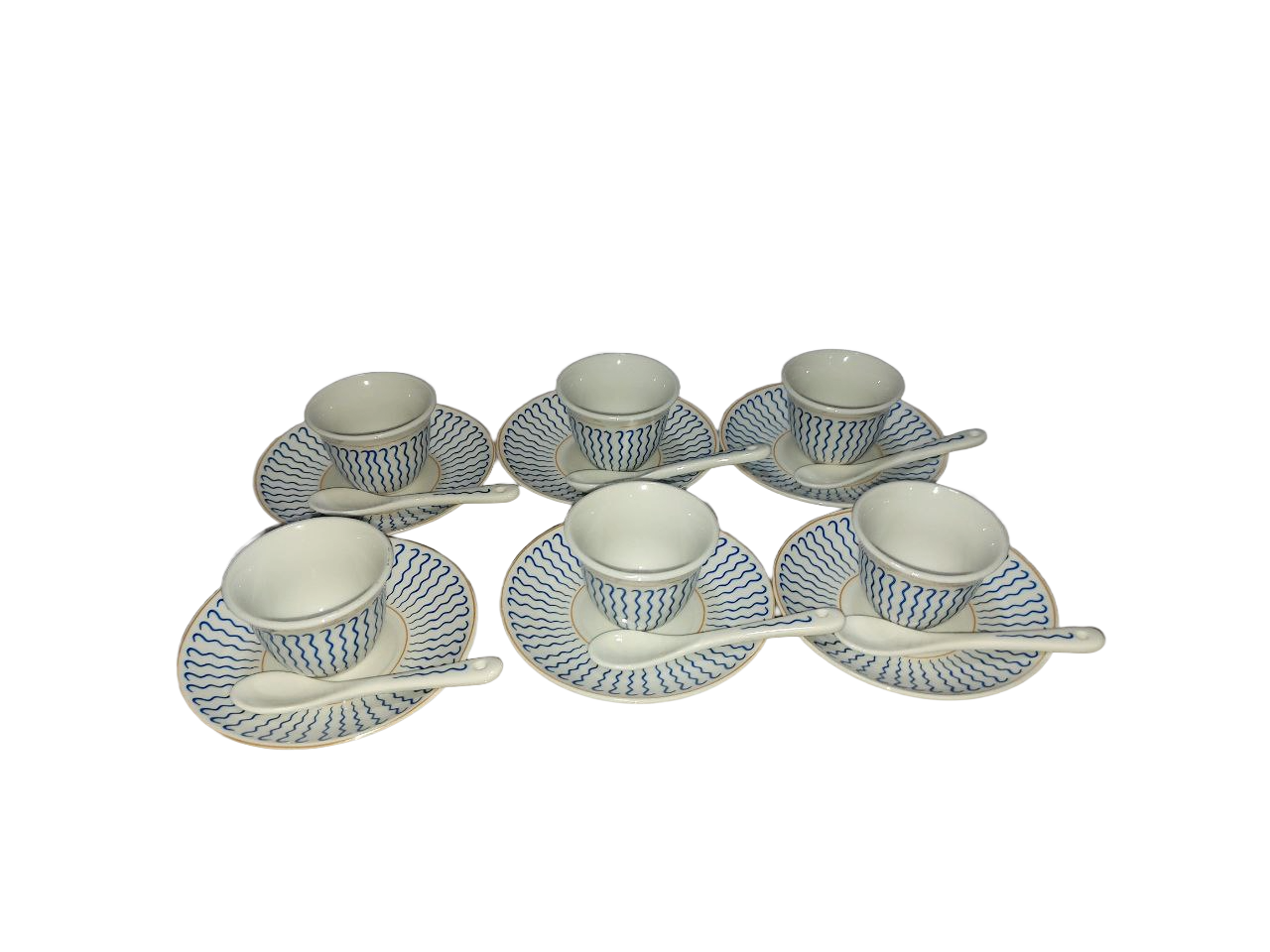 18-piece Cawa cup set with matching saucers and spoons. Includes 6pcs 50cc cups, 6pcs 4.25” saucers, and 6pcs small spoons.