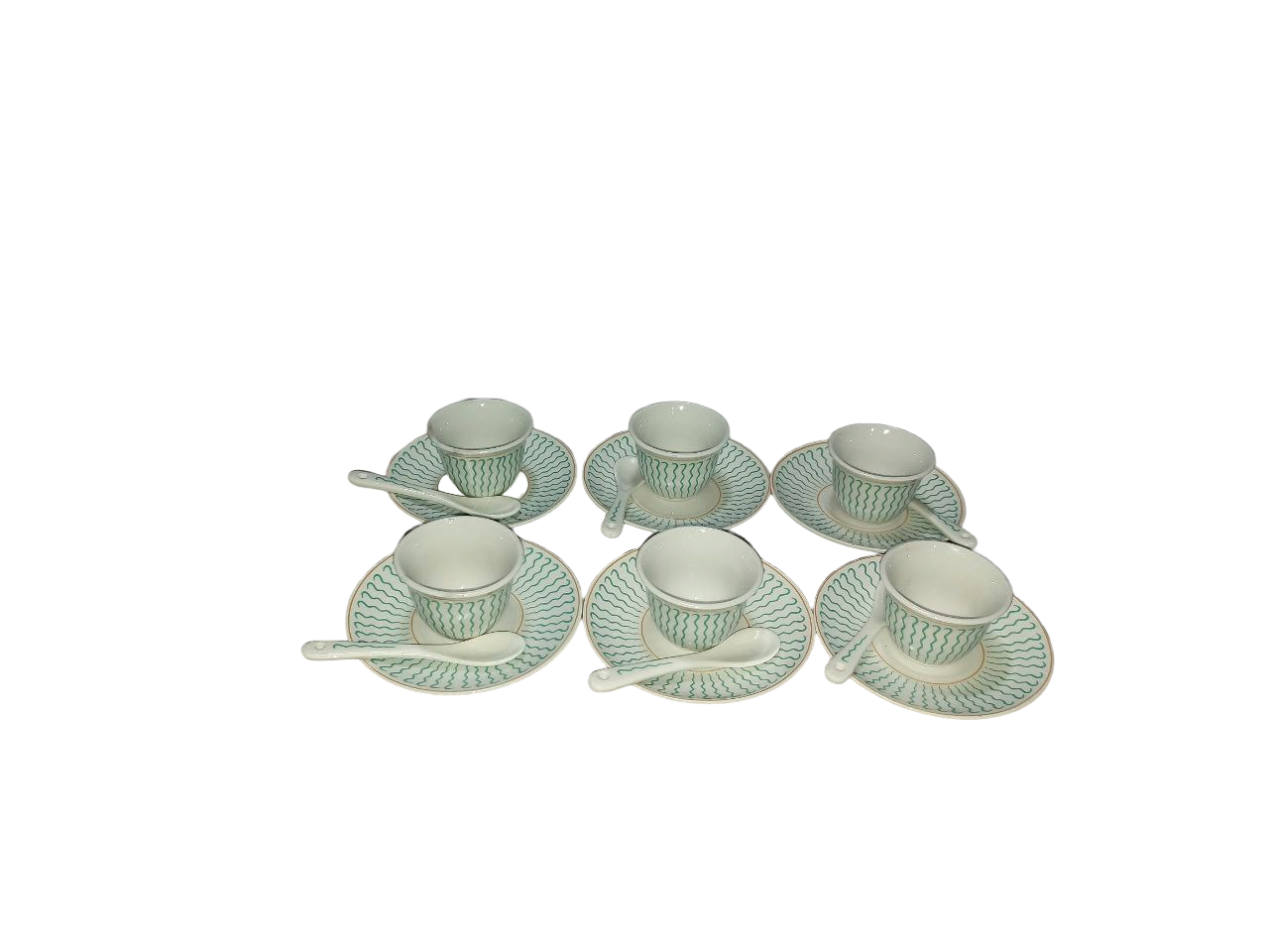 18 Pcs Cup Suacer Spoon Set / ፈናጅል ብ ቀጠልያ / ሲኒዎች በኣረንጋዴ