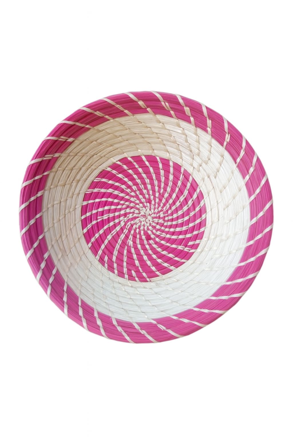 A beautifully crafted handwoven basket featuring a red and natural spiral pattern — perfect for serving, decoration, or cultural display.